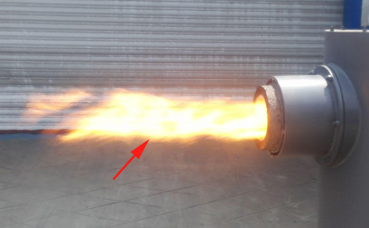 加熱溫度高:技術(shù)采用二次配風(fēng),爐壓在500—700mm水柱以保證射流區(qū)正常流化。連續(xù)供料連續(xù)生產(chǎn),火焰穩(wěn)定,高溫段溫度可達(dá)1300℃,被工業(yè)廣泛應(yīng)用。